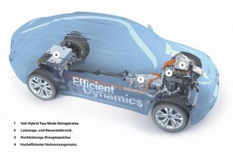 Die Verbindung wird innerhalb des Systems über drei Planetenradsätze hergestellt. Dies ermöglicht eine Leistungsverzweigung für die Antriebsmomente des Verbrennungsmotors und der Elektromotoren in zwei Übersetzungsbereichen. Das „Two-Mode-Aktivgetriebe“ basiert auf einem stufenlosen ECVT-Getriebe (Electric Continuously Variable Transmission), dessen zwei Betriebsarten für niedrige beziehungsweise für höhere Geschwindigkeiten optimiert wurden. Die beiden leistungsverzweigten ECVT-Bereiche ermöglichen stufenlos variable Motordrehzahlen und die volle, hocheffiziente Hybridfunktionalität über den gesamten Betriebsbereich des Fahrzeugs.