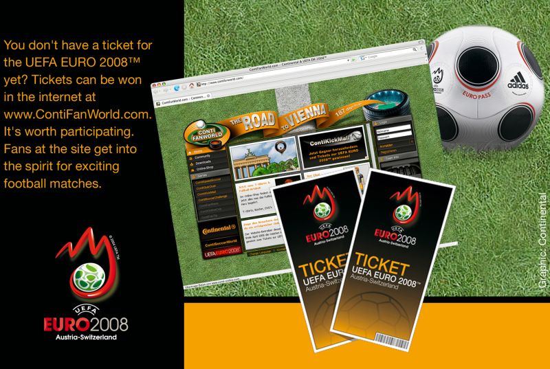 Unter www.ContiSoccerWorld.de informiert Continental umfassend über die eigenen Aktivitäten im Fußball, die Sieger der früheren Turniere, über die Teams und Stars der 16 qualifizierten Teams der UEFA EURO 2008™ und natürlich über alle Ticket-Gewinnspiele.
