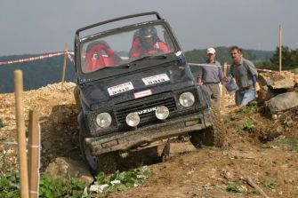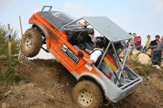 Auch Josef Rosemann und Oliver Miss, ebenfalls vom SCC Bramsche, wurden Opfer einer misslichen Situation. Im wahrsten Sinne des Wortes, denn Oliver, Doppelstarter mit Josef, rollte seinen Suzuki in der Sektion 5 einmal übers Dach ab. Ergebnis: Scheibenrahmen und Überrollbügel defekt. Nun stand da der Samurai von David unbenutzt herum. Schnell wurde man sich einig, dass dessen Scheibenrahmen und Bügel ummontiert wurden, sodass Josef nun endlich ins Geschehen eingreifen konnte. Oliver hingegen verzichtete auf eine Weiterfahrt, denn Josef hatte immerhin noch Chancen auf den Titel in der Klasse Original. Hier siegte jedoch Achim Kohl vor Dominik Keuper, der Josefs härtester Konkurrent in dieser Klasse ist.