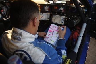 Lucas Cruz studiert sein Roadbook im Touareg-Cockpit.