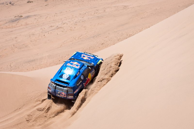 Zunächst hatte Nasser Al-Attiyah, der als Vortagessieger die Strecke eröffnen musste, hinter Sainz gelegen. Erst nach dem zehnten von 13 Wegpunkten wandelte der Rallye-Profi aus Katar einen 1:58-Minuten-Rückstand in 6:36 Minuten Vorsprung um. Hinter Sainz und Al-Attiyah beendeten Giniel de Villiers/Dirk von Zitzewitz (ZA/D) den Tag als Dritte vor ihren Volkswagen Teamkollegen Mark Miller/Ralph Pitchford (USA/ZA). Damit rückten beide in der Gesamtwertung um jeweils eine Position vor: De Villiers ist Dritter. Miller, der die Prüfung zu Beginn angeführt hatte, ist nun Fünfter der Rallye.