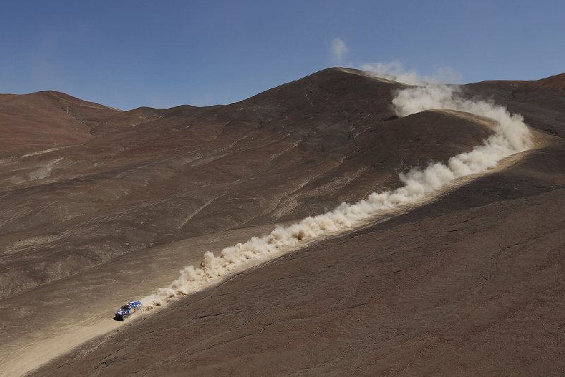 Auf der sandigen Passage zu Beginn ließen es die SMG-Buggy-Piloten noch richtig fliegen, beim zweiten Waypoint wurden Kahle/Schünemann auf Rang Sieben notiert – hinter vier VW Race Touareg und zwei BMW X3 CC. Auf dem folgenden Teilstück mit Steinen und Sand im Wechsel wählten die Deutschen dann eine vorsichtigere Gangart. Besonders zu Beginn der steinigen Abschnitte ließen Kahle/Schünemann einige Sekunden liegen, um keinen Reifenschaden zu riskieren. Die Strategie von Kahle und Schünemann ging auf. Der SMG-Diesel-Buggy erreichte das Ziel in Copiapo ohne Reifenschaden auf Rang Elf der Tageswertung und erneut als bester seiner Klasse. In der Gesamtwertung behauptet das HS RallyeTeam weiter unangefochten die zehnte Position sowie die Führung in der Buggy-Wertung.