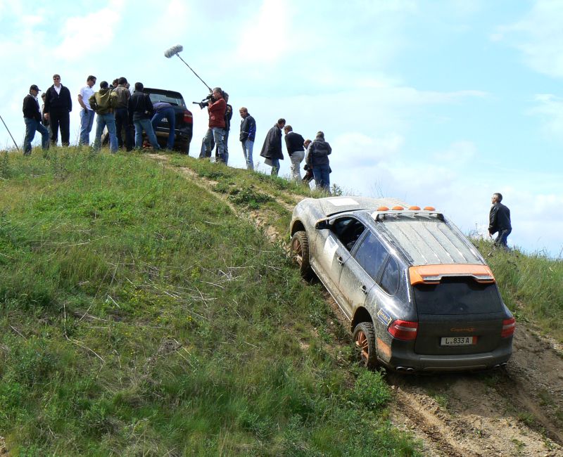 Transsyberia Rallye - Hochklassige Piloten im Porsche Cayenne am Start - Seite 2Der permanente Allradantrieb Porsche Traction Management (PTM) verfügt über eine Quersperre, die die Traktion auf losem Untergrund weiter verbessert. Grobstollige Offroad-Reifen sorgen für eine optimale Verzahnung mit dem Untergrund. Anders als in den Serienfahrzeugen, kann bei dem Rallyeauto je nach Fahrsituation manuell auf die Fahrwerksabstimmung Eingriff genommen werden. So kann etwa die Bodenfreiheit des Cayenne S Transsyberia mit einer Schaltwippe am Armaturenbrett verstellt werden. In schnellen Passagen gleicht das Porsche Dynamic Chassis Control (PDCC) durch zwei aktive Stabilisatoren die Seitenneigung der Karosserie fast vollständig aus. Im schween Gelände können die Stabilisatoren für maximale Achsverschränkung vollständig entkoppelt werden.
