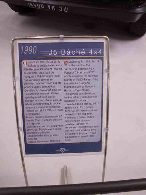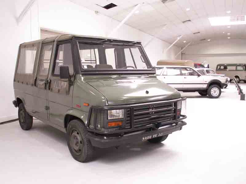 Rein für militärische Zwecke konzipiert präsentiert sich gleich daneben ein J5 aus den 80er-Jahren, ebenfalls mit Dangel-4x4-Technik. Der zusammen mit Fiat (Ducato) entwickelte und gebaute Kastenwagen wurde für seinen Einsatz bei der französischen Armee kurzerhand zum offenen Sechssitzer-Pickup mit dreiteiligem Verdeck für die Doppelkabine und Ladefläche umgebaut. Von einer lstarken Motorisierung kann bei diesem J5 aus dem Jahr 1981 nicht die Rede sein: Sein 2,5-Liter Vierzylinder leistete 75 PS. Der Allradantrieb ließ sich hier bei Bedarf zuschalten.
