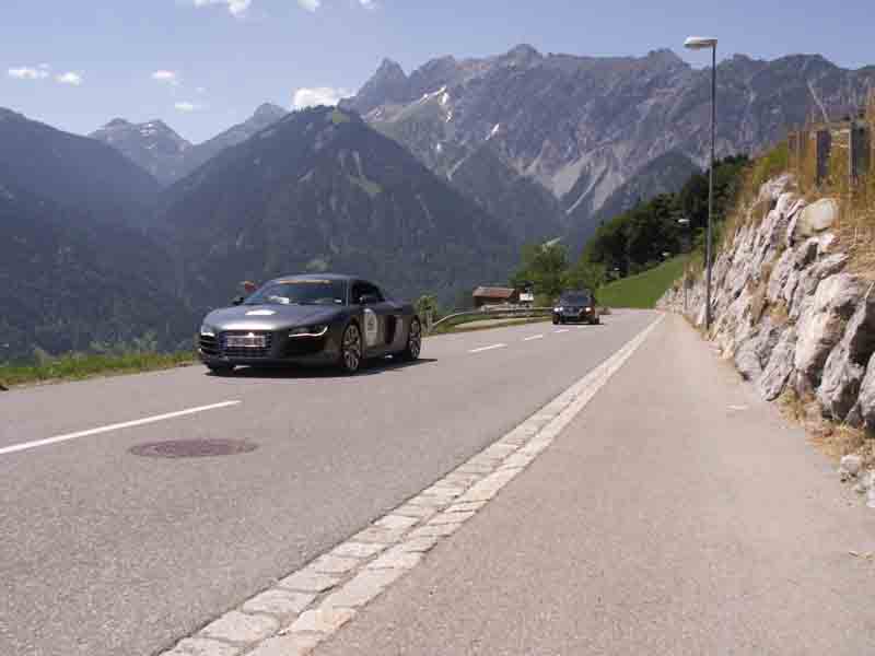 Gesamtsieger wurde dann natürlich… ein Allradler: Der blinde (!) Co-Pilot Enrico Mussinelli navigierte seinen Fahrer Luciano Viaro zum Sieg im Audi Urquattro von 1988. Einen weiteren Sieg durfte Audi dann bei der parallel veranstalteten ersten Rallye für Elektromobile feiern – ebenfalls mit einem allradgetriebenen Modell: Werksfahrer Lucas Luhr und Entwicklungsvorstand Michael Dick pilotierten den „e-tron“ über die Distanz von insgesamt 167 Kilometer auf den ersten Rang. Der Versuchsträger auf Basis des R8 wird von vier Radnaben-Elektromotoren angetrieben, die zusammen eine Leistung von 230 kW (umgerechnet 313 PS) generieren. Im Rahmen der zehn Wertungsprüfungen war die Bergprüfung auf der Silvretta-Hochalpenstraße die größte Herausforderung für die alternativen Antriebe: Hier galt es, einen Höhenunterschied von 1.000 Meter auf nur 15 Kilometer Länge zu bewältigen.