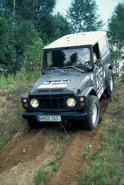 Suzuki LJ 80, 1979 - 83 - Bonsai! Eljot, der Würzige - Seite 7Auch die genannten Sondermodelle sind heute rar. Eher werden Sie auf breite, hohe, exzessive, für die Straße wie den Trialsport üppig umgebaute LJ's treffen. In jedem Fall kommt viel Arbeit auf Sie zu, da Sie ja auf den Originalzustand zurückrestaurieren wollen. Daher sollten Sie, zweitens, einen Blick in den Motorraum und auf das Fahr- wie Schuhwerk werfen: Ein Blick auf die Haubenunterseite zeigt Ihnen, ob die Motorhaubenverstärkung (Rückrufaktion ab Juli `83 wegen Rissbildung) bei ihrem Probanden auch tatsächlich nachgerüstet wurde. Wahrscheinliche Leistungssteigerungen sind (so legal vorgenommen) auch in den Papieren vermerkt, breite und hohe Räder ebenfalls. Freuen könnten Sie sich lediglich über den Verkäufer-Hinweis, er habe seinem Eljot eine größer dimensionierte, haltbare Differentialsperre spendiert. Aber Vorsicht! Das kann auch bedeuten, dass er sein nicht mehr so gutes Stück häufig im Gelände ausgeführt hat, was die gesamte Mechanik natürlich restaurierungsbedürftiger macht. Da die