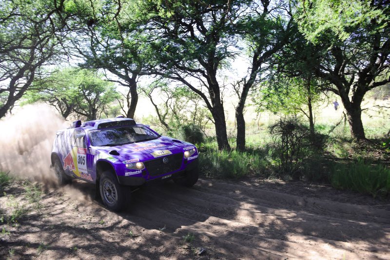 Rallye Dakar – Kopf-an-Kopf-Rennen nach der vierten Etappe07.01.2009 Nach vier von insgesamt 15 Etappen trennen das führende VW-Team Sainz/Perrin weniger als vier Minuten vom zweitplatzierten BMW X3 mit Al Attiyah am Steuer und Tina Thörner auf dem Beifahrersitz. Knappe Abstände der Erstplatzierten kennzeichnen den Beginn der 2009er Auflage der Dakar, die erstmals in Südamerika stattfindet. Carlos Sainz/Michel Périn (E/F) wechselten sich im Race Touareg auf der Prüfung von Jacobacci nach Neuquén im Westen von Argentinien im Zweikampf mit Nasser Al Attiyah/Tina Thörner (Q/S) in ihrem X-raid BMW an der Spitze ab. Trotz eines schleichenden Reifenschadens auf den letzten Kilometern der vierten Wertungsprüfung, die sich durch Trial-artige Abschnitte, Fahrten durch ausgetrocknete Flussbetten und einen vergrößerten Offroad-Anteil von den Tagen zuvor unterschied, gewann das Volkswagen Duo mit knappen sechs Sekunden Vorsprung. Damit führt Sainz den berühmten Wüstenklassiker am dritten Tag in Folge an und vergrößerte seinen Vorsprung vor dem X-raid-BMW-Fahrer auf 3.46 Minuten. Wie intensiv das Duell war, beweist der Umstand, dass sich Sainz und Al-Attiyah auf der 488 Kilometer langen Tagesetappe im Duell um die Führung um mehr als zwei Minuten vom besten Verfolgerteam absetzten, dem Mitsubishi Lancer mit Luc Alphand am Steuer. Mark Miller/Ralph Pitchford (USA/ZA) gelang auf der steinigen Prüfung, die von über 1.300 Metern Höhe bis auf 300 Meter über dem Meeresspiegel abfiel, die viertbeste Etappenzeit. Nach der vierten Etappe dominieren Volkswagen, BMW und Mitsubishi die Dakar, die drei Teams teilen sich die ersten acht Plätze: VW hält die Positionen eins, drei und sechs im momentanen Gesamtklassement, X-raid BMW liegt auf den Plätzen zwei und sieben, die Mitsubishi sind vierte, fünfte und achte der Wertung. Die heutige fünfte Etappe führt über 763 Kilometer – davon 506 Kilometer Wertungsprüfung von Neuquen nach San Rafael in Argentinien, wo es die Teams mit langen Dünenpassagen zu tun bekommen.