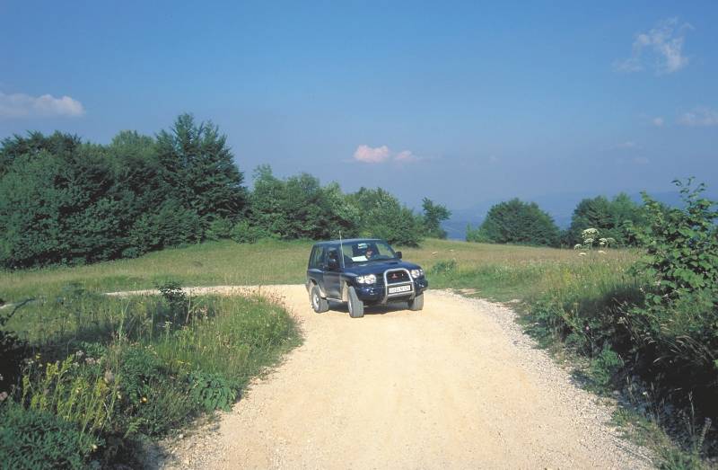 Gerade mal 15 Kilometer Luftlinie östlich der unterirdischen Touristenattraktion finden wir im Örtchen Grahovo den Einstieg zu einer unendlich scheinenden Wildnis. Von hier aus erstreckt sich bis hinüber zur Hauptstraße Nummer 6, die Ljubljana in Richtung Süden verlässt eine Mittelgebirgslandschaft, die fast völlig von Teerstraßen verschont geblieben ist.  Unser Ziel ist der Berg Slivnica, auf den der Karte nach ein befahrbarer Weg führen muss.