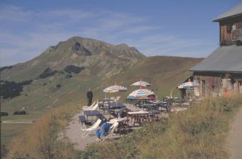 Wir genießen das Gebirgspanorama auf der Paßhöhe, ehe es auf der anderen Bergseite, an Bauernhöfen vorbei, wieder hinunter ins Tal geht. Bei Kilometer 14,7 im Roadbook biegen wir links ab und fahren wieder bergauf Richtung Col des Annes (1721 Meter), wo bewirtschaftete Almhütten zum Verweilen einladen. Die Weiterfahrt Richtung Osten ist allerdings gesperrt, so daß es auf der Teerstraße über les Plans in einer Schleife wieder zurück nach Le Grand Bornand geht. Wir stellen schnell fest, daß die Berghütten von Les Annes ein beliebter Ausflugsort für die Bewohner der ganzen Region sind.