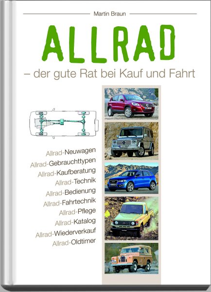 Buchbesprechung – Martin Braun: Allrad, der gute Rat bei Kauf und Fahrt16.06.2010 ...so der Titel des von Martin Braun herausgebrachten Buches, das den Rundumschlag schafft und den Leser auf 334 dicht beschriebenen Seiten über alle Themen rund um Geländewagen und SUV informiert. Mit Sicherheit keine leichte Lektüre, aber ein Kompendium mit dem Potenzial zum Standardwerk der Szene. Auf die Frage, an welchem Buch er denn gerade arbeiten würde, antwortete Autor Martin Braun während der eineinhalbjährigen Produktionsphase nicht ohne Augenzwinkern: „Am Alles-über-Buch“. Und das Ziel, alles an seinem Wissen über Geländewagen und SUV in einem einzigen Buch zu bündeln, hat der Autor konsequent verfolgt: „Erst nach 334 Buchseiten war das Gefühl da, alles Wichtige geschrieben zu haben“, resümiert Martin Braun bei der Vorstellung von „Allrad – der gute Rat bei Kauf und Fahrt“.