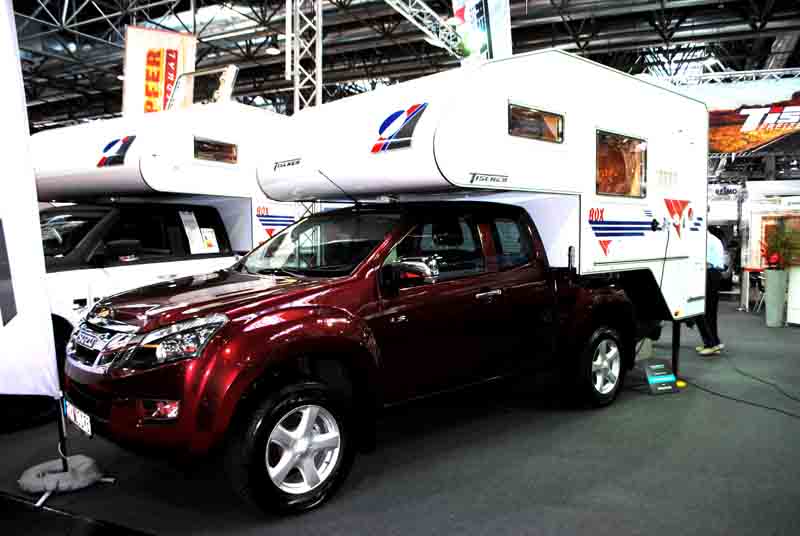 In der Sparte der Absetzkabinen für Pickups hatte Bimobil aus Oberpframmern bei München sein jüngstes Kabinenwerk, die „husky 270“ für und auf VW Amarok Single Cab dabei (siehe unsere Meldung vom 20. August). Auch Tischer Freizeitfahrzeuge hat seine Trail/Box auf den VW Amarok mit der langen Ladefläche zugeschnitten und das „Raumwunder“-Modell 290S mit einem um 30 cm verlängerten Grundriss ausgestellt. Als Neuheit zeigte das Unternehmen aus Kreuzwertheim außerdem seine Adaption der Box 240 für die Anderthalb-Kabiner Variante des neuen Isuzu D-Max mit 403 cm Außen- sowie 238 cm Innenlänge (von der sich auch die Modellbezeichnung ableitet).