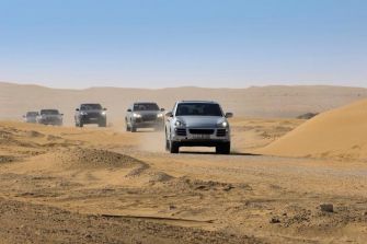 Mit dem Travel Club geht es unter anderem in ein Wüstencamp in Dubai, in dem die Teilnehmer im Cayenne über Sanddünen, Gebirgsketten und durch ausgetrocknete Flussläufe fahren können.