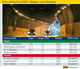 EuroTAP - European Tunnel Awards - Der ADAC kürt die sichersten Tunnel Europas und zieht damit Bilanz aus über 300 Tests in 20 Ländern
