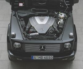 Noch lange nicht G-nug! - Mercedes G 400 CDI22.02.2006 Das wichtigste zuerst: Die von Magna Steyr im österreichischen Graz seit 1979 rund 185.000 mal produzierte G-Klasse wird auch weiterhin gebaut – parallel zur M-Klasse und der neuen GL-Klasse. Und noch eine gute Nachricht: Die Artenvielfalt der G-Baureihe bleibt gesichert: Mit drei Karosserievarianten (Cabrio mit kurzem, sowie Station mit kurzem und langem Radstand) und fünf verschiedenen Motorversionen – wobei aber nicht jedes Triebwerk mit jeder Karosse kombiniert werden kann. Bei den Benzinern besteht die Wahl zwischen dem V6-Zylinder des G 320 mit 158 kW (215 PS) und zwei V8 Triebwerken mit 218 kW (296 PS) im G 500 beziehungsweise 350 kW (476 PS) im G 55 AMG. Die Einstiegsmotorisierung bei den Dieseln ist der Reihenfünfzylinder im G 270 CDI mit 115 kW (156 PS) – für leistungshungrige steht dagegen der Vierliter V8 mit stattlichen 184 kW (250 PS) bereit, der auch unter der Haube des Testwagens verbaut ist.