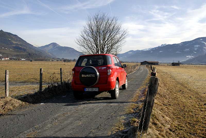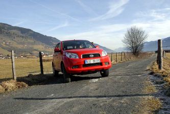 Kompaktes SUV für wenig Geld - Daihatsu Terios - Seite 4In seinem Element ist der Terios aber, sobald es runter von den geteerten Straßen geht – für den Offroad-Einsatz haben die Japaner ihr SUV schließlich gut gerüstet. Die Motorkraft wird bei allen Terios-Versionen über ein zentrales Differenzial permanent und zu gleichen Teilen an die beiden Achsen geleitet. Über einen Knopf links am Armaturenbrett lässt sich das Zentraldifferenzial zu 100 Prozent sperren. Für ein weiteres Traktions-Plus sorgt die elektronische Schlupfregelung des Stabilitätsprogramms, die sich bei Bedarf auch abschalten lässt. Mit einer vorderen Einzelradaufhängung und schraubengefederter hinterer Starrachse setzten die Japaner auf eine robuste Konstruktion, die eher Geländewagentechnik als SUV-Standard ist. Dank der kurzen Übersetzung meistert der Terios auch noch relativ steile Passagen – trotz fehlender Geländereduktion. Und die kurzen Überhänge sowie die Bodenfreiheit von 20 cm sichern ihm geländetaugliche Böschungs- und Rampenwinkel. Der Terios ist so ein idealer Begleiter, wenn Hobby oder Beruf Abstecher ins leichte Gelände erfordern. Daihatsu