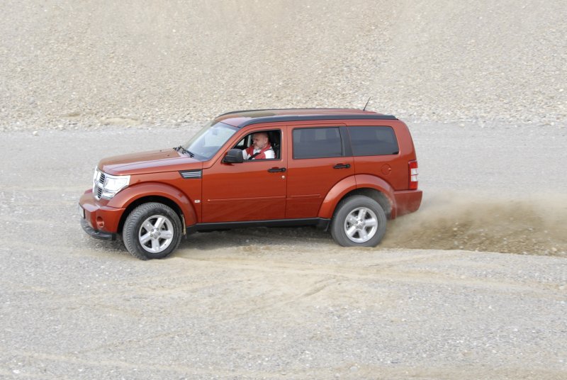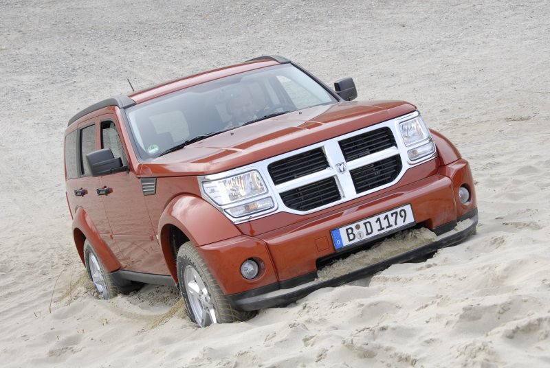 Dodge Nitro SXT 2.8 CRD Automatik – Howdy Cowboy16.05.2008 Muscle Car oder Showcar – diese Frage stellt man sich unwillkürlich immer wieder, wenn der Blick über die markante Karosserie des Dodge Nitro gleitet. Geil sieht er aus, der Nitro. Von vorne nimmt er mit seiner spitz zulaufenden Motorhaube und den ausgestellten Kotflügeln deutliche Anleihen an den im Land der Cowboys so beliebten Hot Rods. Aus allen anderen Blickwinkeln sagen Dir die hohe Gürtellinie und die niedrigen Scheiben, dass hier eine Mischung aus geshaptem Ami und Hummer vor Dir steht. Und dann noch dieser martialische Kühlergrill mit dem Widder-Logo: Kein Zweifel, der Nitro ist ein Muscle-Car erster Sahne. Echt Geil eben, für Leute mit meinem ausgeprägt guten Geschmack, wie jenem Passanten, der vor der Stehkneipe – sorry, vor dem Nichraucher-Saloon deutscher Prägung – eine Zigarettenpause macht und mich mit Fragen bombardiert. Auch er ist vom Nitro beeindruckt.