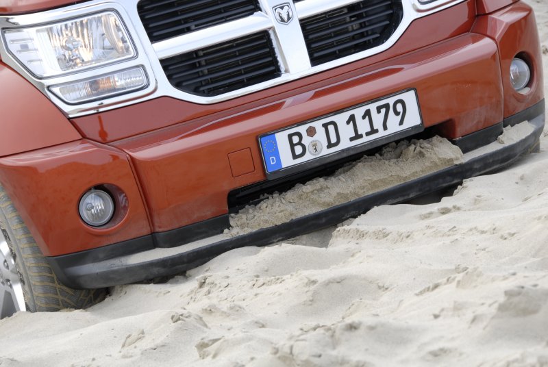 Wer also Geländeausflüge mit dem Nitro vorhat, der sollte Vorsicht walten lassen. Auch wegen dem weit vorstehenden Frontspoiler und der fehlenden Geländeuntersetzung. Ist der Dodge also eher ein straßenorientiertes SUV? Irgendwie auch nicht ganz! Dagegen sprechen der simple Zuschalt-Allrad und die Manieren der hinteren Starrachse, die bei Querfugen in Kurven doch spürbare Unruhe ins Fahrzeug bringt.