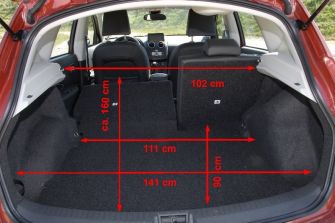 Weniger komfortabel: Die Rücksitzbank ist weder in der Länge verschiebbar, noch lässt sich ihre Lehne in der Neigung verstellen. Zur Vergößerung des Kofferraumvolumens können zwar die beiden Hälften der Lehne umgeklappt werden, nicht aber die Sitzbank. Mit dem Effekt, dass der maximal rund 1,6 Meter lange Laderaumboden zwar bis zu den Vordersitzlehnen reicht, aber keine völlig ebene Fläche ergibt.