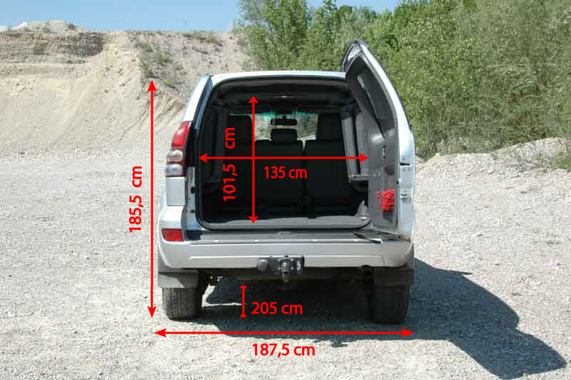 Karosserie Leiterrahmen, Stahl-Karosserie, 2 Türen, seitlich angeschlagene Heckklappe, 5-8 Sitzplätze (ausstattungsabhängig)