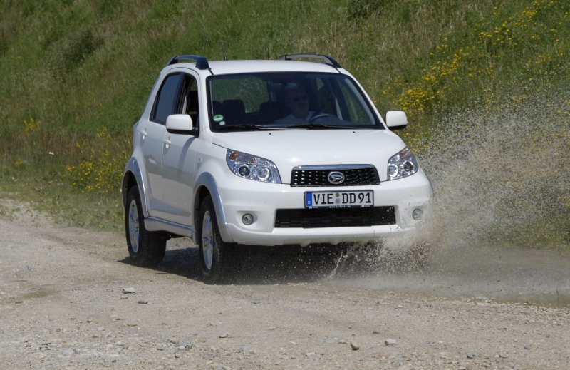 Daihatsu Terios 1.5 4WD – Wahlversprechen zum Facelift / Seite 4Da wundert es nicht, dass das Ergebnis der technischen Bemühungen an der Zapfsäule zwiespältig ausfällt: Im Stadtverkehr sind die Modifikationen im Verbrauch spürbar und auch bei Landstraßentempo genehmigt sich der 2009er Terios weniger Sprit. In beiden Fällen ist beim Durchschnittsverbrauch eine acht vor dem Komma realistisch. Bei höheren Geschwindigkeiten jedoch bestimmt die kurze Gesamtübersetzung den Treibstoffkonsum und daran hat sich ja nichts wesentliches geändert. Und so genehmigte sich der aktuelle Daihatsu Terios 4WD über die gesamte Testdistanz 9,4 Liter Benzin pro hundert Kilometer – und damit nur 0,2 Liter weniger als vor der Modellpflege. Die versprochenen „bis zu 0,8 Liter“ sind da wohl eher als Wahlversprechen zu verstehen, aber die Tendenz geht zumindest in die richtige Richtung. Darüber hinaus ist der Terios 4WD mit einem Einstiegspreis von 21.490 Euro immer noch eines der preiswertesten SUV-Modelle auf dem Markt. Vor allem auch deshalb, weil inzwischen das „Top“-Ausstattungspaket Serie beim Allrad-Terios ist. Und auch in den anderen Punkten gilt immer noch das im 2007er Testbericht gesagte – und der hatte den Titel „Kompaktes SUV für wenig Geld“.