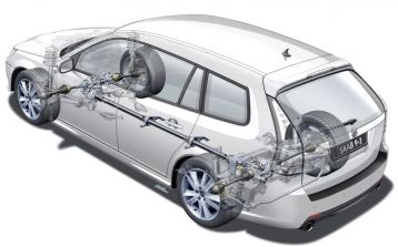 Ad eins: Das Allradsystem. Im Zuge unseres Erstkontakts hatten wir es ja bereits ausführlich vorgestellt. Daher nur noch mal in gebotener Kürze, die würzige Essenz: Auf der Basis der aktuellen Haldex-4-Generation haben die Saab-Techniker einen Allradantrieb mit radselektiver Kraftverteilung an der Hinterachse installiert. Das heißt: Im Bedarfsfall wird nicht nur die Kraft zwischen den Achsen variiert, sondern auch zwischen den Hinterrädern.