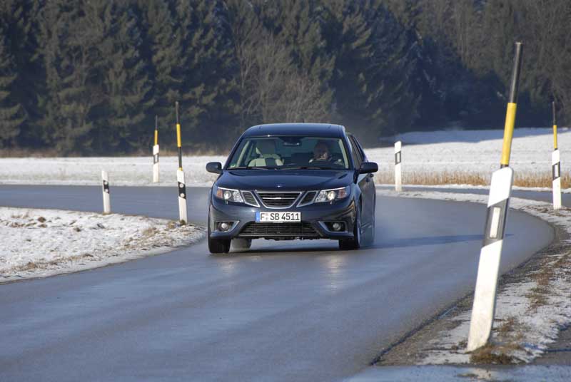 Der sechste Gang flutscht natürlich erst sehr viel später rein. Auf der Autobahn erfreut uns das seidige Sechszylinder-Aggregat mit einem hohen Maß an Elastizität – bei der Abstimmung haben die Saab-Techniker mal wieder ihr Jahrzehnte erfahrenes Turbo-Händchen bewiesen. Herunterschalten ist selten nötig, mancher Zwischenspurt lässt sich noch locker in der sechsten und letzten Zahnradpaarung erledigen: Neunkommasieben Sekunden vergehen von 80 bis 120 km/h – wer einen Gang zurückschaltet schafft's im Notfall gute 2,3 Sekunden schneller. Bei 250 km/h ist übrigens Schluss, dann regelt die Elektronik ab.