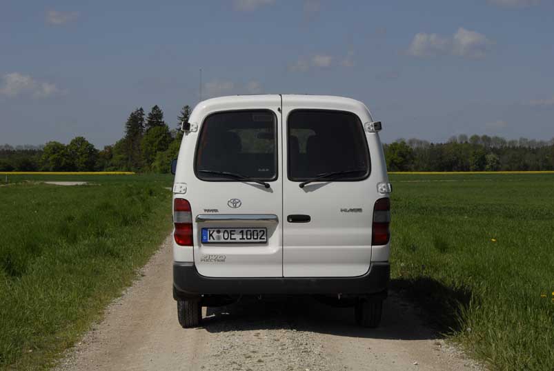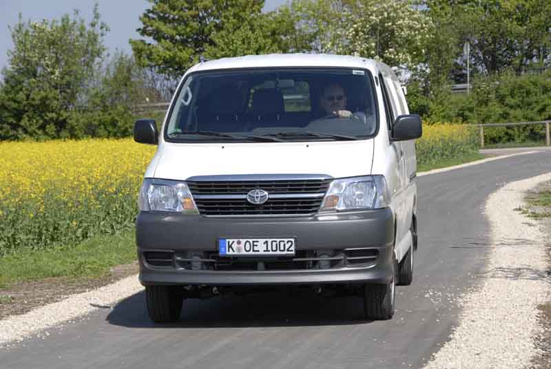 Toyota Hiace D-4D 4x4 Kasten lang - Solides, großes Arbeitstier / Seite 3Alles verstaut und festgezurrt. Los geht's. Vor allem in Richtung Rennstrecke haben wir's eilig, der Terminplan ist eng gesteckt und wir möchten uns einen guten Platz im Fahrerlager sichern. Der erste Gang ist mit 4,313:1 recht kurz übersetzt: Gut zum Anfahren an Steigungen, mit Hänger und/oder voller Beladung. Wie eben jetzt. Und im Bedarfsfall eben auch auf losem Untergrund, dank dem permanenten Allradantrieb via einer Visco-Kupplung am Zentraldifferenzial, die die Antriebskraft variabel von der Hinter- in Richtung Vorderachse verlagert. So kommt man problemlos runter von der nassen Wiese oder aus dem verschneiten Parkplatz. Und fühlt sich auch auf regennasser oder weiß überzuckerter Straße trotz fehlendem ESP tendenziell fahrsicher: Im Extremfall neigt das Heck nur kurz zu einem Ausbrucksversuch, bevor die Kraftverlagerung es wieder einfängt. Dass sich die simple Lösung mit der „Öldose“ (vulgo: Lamellen im Ölbad) beim Rangieren durch Verspannungen bemerkbar macht, kennen wir noch aus den Anfängen des permanenten Allradantriebs. Zurück zum Charakter des Turbo-Selbstzünders, dessen Durchzug fast an einen guten alten