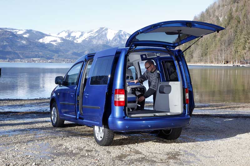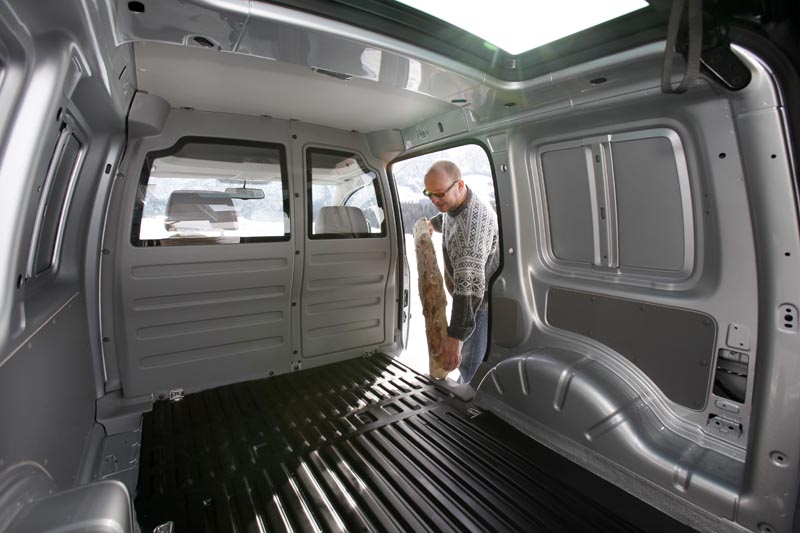 VW Caddy 1.9 TDI 4motion – Endlich auf allen Vieren - Seite 4Außerdem ist der VW Caddy ja nun mal weniger Sport- als vielmehr Nutzfahrzeug: Wie beim Fronttriebler agiert hinten eine auf hohe Zuladung ausgelegte blattgefederte Starrachse, die für den 4motion allerdings neu konstruiert wurde. Das war nötig, um die rund 60 Kilo schwere Antriebseinheit aus Haldex-Kupplung, zweigeteilter Kardanwelle und Differenzialkorb unterbringen zu können. Auf kurvigen Straßen erster Ordnung ist man damit ausreichend spurstabil und komfortabel unterwegs, Sünden des Straßenbauamtes meldet die Hinterhand mit einem leichten Stuckern. Das Stichwort „Nutzfahrzeug“ lenkt unsere Aufmerksamkeit auf die Ausstattungs-Versionen: Beim nackten Kastenwagen begnügen wir uns in der Basis mit einer Schiebetüre auf der rechten Seite sowie Heckflügeltüren oder einer nach oben aufschwingenden Klappe als Zugang zum blechgekleideten Laderaum. Der misst maximal 1.558 mm in der Breite sowie 1.781 mm in der Länge und kann somit eine Europalette aufnehmen. Wer diese Variante mit Fenstern sowie ohne Trennwand zum Fahrerabteil ordert und eine Dreiersitzbank in den Fond stellt, hat einen praktischen Kombi. Für den Familienbetrieb bieten sich der „Life“ mit komfortabler, klappbarer Sitzbank sowie Komfortausstattung (u.a. Teppichboden, Dachgalerie, Gepäcknetze, Cupholder) an. Mit einer zweiten Fondbank lässt sich der Life zum Siebensitzer erweitern.