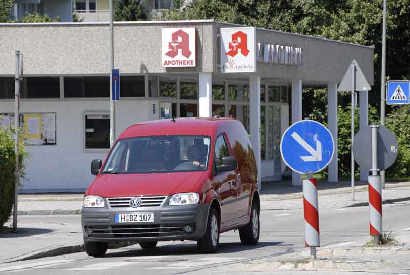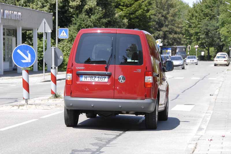 Zügig geht's auch dank dem straff-komfortabel abgestimmten, präzise agierenden Fahrwerk und der zielgenauen Lenkung voran: Im hektischen Stadtverkehr vermittelt der Caddy 4motion Kasten eine gehörige Portion Spaß, weil man so schön mit ihm durch die Reihen der im Alltag behäbig dahinschraddelnden Sonntagsfahrer umhwerwuseln kann. Sprich: mit einem Tritt aufs rechte Pedal lässt man die Newton'schen Muskeln spielen und wechselt flugs mal die Spur. Da gibt's kein Wanken und kein Reifenquietschen, auch nicht im schlängeligen Geläuf auf der Landstraße. Und keine grobe Ausrutschertendenz auf schlupfigem Untergrund. Nur ein bisserl holprig-polterig wird's, wenn man mit der unbelasteten Caddy-Hinterachse über Asphaltnarben und Bodenwellen holpert.