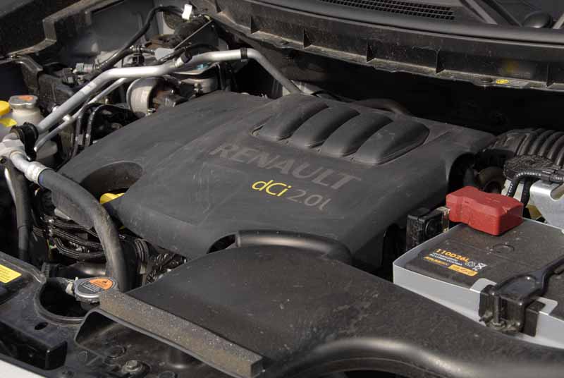 Der Modellname assoziiert ganz spontan das Bild eines „Koloss“ – und damit eines überdimensionierten, schweren, allerdings auch starken Automobils. Aber weit gefehlt in der Realität: Auf das kompakte SUV von Renault – im letzten Jahr ein wahrer Goodseller (+15 % Verkäufe gegenüber 2008) – trifft nur das letzte der drei vermuteten Attribute wirklich zu. Vor allem, wenn man sich eben für die 173 PS-Version des 2,0 Liter-Vierzylinder Selbstzünders entscheidet, den wir bereits nach dem Erstkontakt favorisierten. Ein Aggregat, das dank seines Drehmoments von 360 Newtonmeter bei 2.000 Kurbelwellenrotationen und eines eng gestuften Sechsgang-Schaltgetriebes (das ebenso wie Allradsystem und Fahrwerk aus den Regalen der japanischen Schwestermarke Nissan stammt) mit einem im wahrsten Wortsinn kräftigen Vorwärtsdrang begeistert: In unserem Testlauf hat es die über 1,7 Tonnen des Viertürers in knapp elf Sekunden auf 100 km/h beschleunigt. Natürlich bedarf es dazu auch einer energischen Schalthand, die sich aber im Falle der kurzwegigen und präzisen Kulisse nicht wirklich schwertut oder gar in der Gangwahl verirren kann.