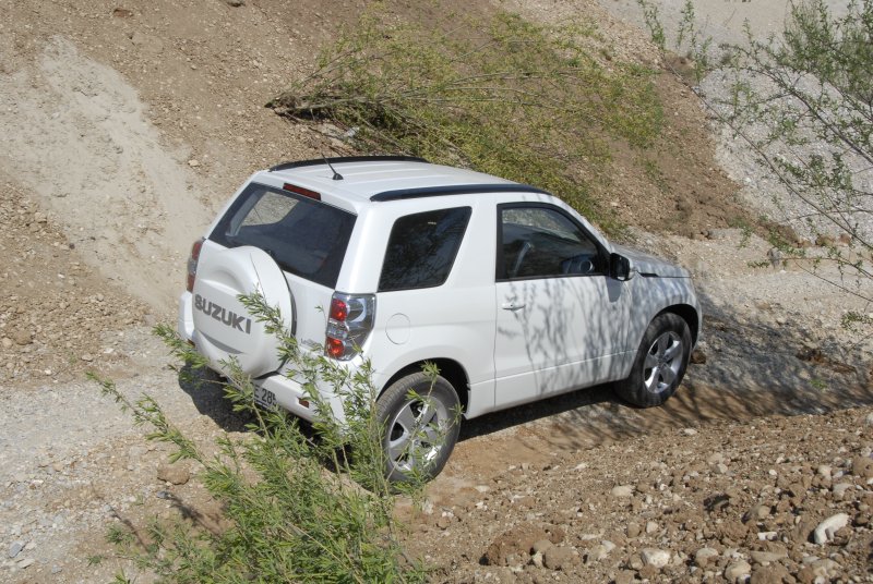 Gerade einmal 4,06 Meter misst der dreitürige Grand Vitara in der Länge, entsprechend kurz fällt auch sein Radstand aus: 244 Zentimeter trennen die beiden permanent angetriebenen Achsen voneinander. Und das mit dem permanenten Allradantrieb meint Suzuki beim Grand Vitara ernst: Ein Zentraldifferenzial versorgt Vorder- und Hinterräder stets mit der Hälfte der Antriebskraft – sollte es ernster werden, hat der Fahrer die Möglichkeit, dessen Ausgleichswirkung manuell zu sperren.
