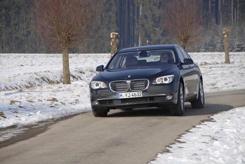 BMW 740d xDrive – Southern Comfort / Seite 3Fahrsicherheitstechnisch hat man mit dem xDrive-Allradsystem eh kaum was zu fürchten: Es macht diesen potenten Siebener fast narrensicher im Handling – vor allem in der Kombination mit dem präzise agierenden, elektronisch einstellbaren Fahrwerkssystem „Dynamic Drive“, bei dem der Fahrer per Druckschalter zwischen einer komfortablen, normalen, sportlichen und quasi supersportlichen Abstimmung der Federung und Dämpfung wählen kann. Letztere Stufe erfordert dann allerdings den Routinier am Lenkrad, da in dieser Einstellung beispielsweise auch die Traktionskontrolle abgeschaltet wird: Eine Herausforderung für die „ich-kann-nur-mit-elektronischen-Assistenten-fahren-Generation“, ein Fahrfest für deren puristisch erfahrene „ich-kann-auch-ohne“ Vorväter. Denn gibt man dem 740d xDrive in diesem Programm die Drehmoment-Sporen, beispielsweise in bergigem Geläuf mit der ein bis anderen Spitzkehre, zeigt diese große Limousine wahren Sportsgeist. Dann stellt der Turbolader seine variablen Schaufelräder auf und pustet vehement durch, spritzen die Piezo-Injektoren via der Common-Rail-Leitung den Dieselkraftstoff mit einem Maximaldruck von 2000 bar in die sechs Brennräume des Vollaluminium-Triebwerks, in denen spontan ein wahres Feuerwerk abbrennt. Und sodann verteilen sich die 600 Newtonmeter ab 1.500 Umdrehungen via der elektronisch gesteuerten Lamellenkupplung bedarfsgerecht auf die beiden Achsen, wobei zunächst einmal zwecks Betonung der BMW-charakteristischen Dynamik die hintere bevorzugt wird. Erst wenn das System dort unerwünschten Schlupf registriert, kommandiert die Elektronik einen Teil der Kraft an die Vorderräder. Das wird vom Fahrer kaum bemerkt, nichtsdestotrotz aber äußerst effizient geregelt. Wer mit einem sensiblen Popometer ausgestattet ist, notiert allenfalls einen leichte Tendenz des Hecks zum Kurvenaußenrand. Bevor man überhaupt am Lenkrad gegenzucken kann, ist die Sache schon erledigt, hat sich das Zweitonnengefährt wieder stabilisiert und zieht seine Spur über die Vorderräder. Mit gleicher, reaktionsschneller Präzision erfreut das Schaltprogramm der achtstufigen Automatik: Es wechselt die Übersetzungsstufen ohne Zaudern und uneffizienten Drehzahlabfall. Sprich: Übergänge und Anschlüsse stimmen und sorgen für zügigstes Vorantreiben. Bei einer spontanen Leistungsabforderungg via Kickdown, legt die Schaltelektronik nur ein wimpernschlaglanges Gedenksekundenbruchteilchen ein – dann ist der Gangwechsel erledigt. Ja, doch: Handarbeit am Wählhebel ist möglich, aber im Prinzip völlig unnötig, weil dieser menschmotorische Vorgang mit deutlicher Zeitverzögerung abläuft und daher eher den sportpsychologischen „ich-kann-aber-auch-schnell-schalten“ Effekt hat.