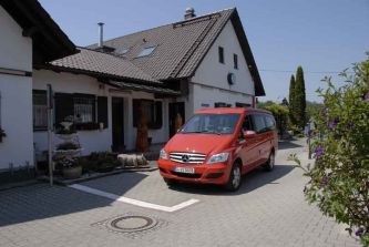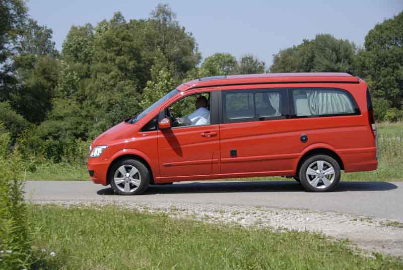 Mercedes Viano CDI 2.2 Marco Polo 4matic – Ferien auf allen Vieren / Seite 2Souverän bügelte das modifizierte Fahrwerk alle Unebenheiten glatt und ließ den vollgepackten 3,1-Tonner (präzise: 3.050 kg zulässiges Gesamtgewicht) spurtreu und souverän über die Land- und Schnellstraßen gleiten: ein gutes und sicheres Fahrgefühl. Sein Schärflein auf feuchter, nasser oder unasphaltierter Straße trägt der „4matic“ genannte permanente Allradantrieb bei. Der allerdings technisch nicht dem gleichnamigen System in den Pkw-Modellen zu verwechseln ist: Im nutzfahrzeugigen, technisch mit dem Vito 4x4 identischen Viano leitet ein schräg verzahntes Verteilergetriebe die Kraft zu 65 Prozent an die Hinter- und zu 35 Prozent an die Vorderachse. Den traktionsfördernden Schlupfausgleich übernimmt in diesem Falle das „4ETS“ genannte elektronische Regelsystem, das via der ABS-Sensoren aktiviert wird: Ob auf nasser Campingplatzwiese oder einseitig feuchtem Asphalt auf der Steigung bremst es die durchdrehenden Räder in kurzen Impulstakten recht effizient ein und bewegt den Marco Polo aus dem Schlammassel. Der Fahrer muss dazu kaum mehr beitragen, als seinen rechten Fuß nachdrücklich auf's Gaspedal zu drücken und die Richtung am Lenkrad vorzugeben. In leicht gröberem Gelände – für schweres ist der Viano Marco Polo 4matic mit seinen 154 mm Bodenfreiheit und moderaten Böschungswinkeln von 20° vorne sowie 19° hinten nun wirklich nicht geeignet – geht man zur Vermeidung der Zugkraftunterbrechung in die manuelle Ebene der Automatik und legt den ersten oder zweiten Gang ein. Das 4matic-System ist ergo effizient genug, den Marco-Polo-Allradwanderer in Regionen zu befördern, vor denen der Campingbus'ler mit konventionellem Heck- oder Frontantrieb und geringerer Bodenfreiheit kapituliert. Ab in die Seitenwege der Berge oder an den weniger zugänglichen Strand also: Hier lässt es sich ein paar Tage ungestört campen. Dazu hat Westfalia einen praktikablen Ausbau installiert, der auf einem seit Jahrzehnten bewährten – bereits für den in den 90er Jahren produzierten Vorgänger auf Vito-Basis gezeichneten – Grundriss basiert: Küchen- und Staumöbelzeile sind auf der linken Fahrzeugseite platziert, die ausziehbare Zweiersitzbank ist auf Schienen im Fond eingeklinkt und unter dem mechanischen Aufstelldach findet sich ein recht komfortables Doppelbett.
