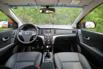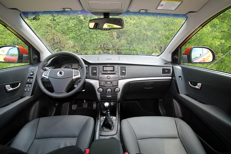 Modern, übersichtlich und solide verarbeitet zeigt sich das Cockpit des Korando. Die vielen Ablagen, unter anderem in der vorderen Mittelarmlehne oder oben am Armaturenbrett, sind  praktisch. Großzügig ist seine Serienausstattung: Neben den allfälligen elektrischen Helfern glänzt der Koreaner bereits in der 24.490 Euro teuren Allrad-Basisausstattung „Quartz“ mit Oberklasse-Features wie Sitzheizung, automatisch abblendendem Innenspiegel, Einparkhilfe hinten, Alarmanlage, Tempomat und einer Lenkrad-Fernbedienung für die Stereoanlage mit Bluetooth- und USB-Schnittstelle. Dass die Sicherheitsausstattung ebenso komplett ist, versteht sich da fast schon von selbst.