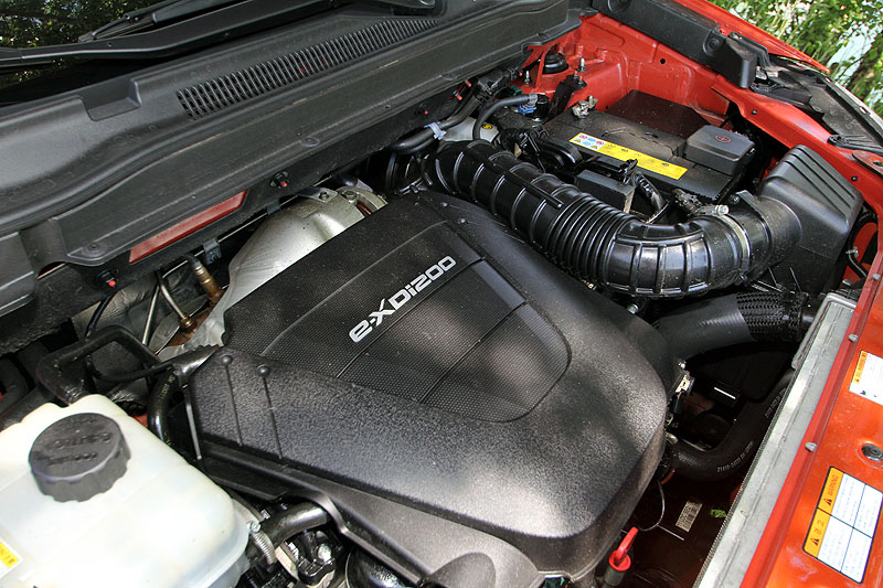 Zunächst kommt als einzige Antriebsquelle im Korando ein zwei Liter großer Commonrail-Turbodiesel mit 129 kW/175 PS bei 4.000 U/min zum Einsatz. Das maximale Drehmoment von 360 Nm des Xdi200 genannten Triebwerks liegt zwischen 2.000 und 3.000 Touren an, und sein Verbrauch soll bei 6,4 Liter liegen, was CO-2-Emissionen von 169 Gramm pro Kilometer entspricht. Sobald sich die Nadel des Drehzahlmessers der Zweitausender-Markierung nähert, legt der Vierzylinder richtig los, bis er jenseits von 4.000 Touren wieder an Drehfreude verliert. Im schmalen Drehzahlband zwischen zwei- und viertausend Kurbelwellenumdrehungen macht das Triebwerk aus koreanischer Produktion richtig Spaß, darunter wirkt er schlapp, darüber wird er zäh.