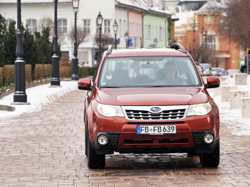 Subaru Forester 2.0X – Neuer Benziner in bekannter Hülle / Seite 3Weiterhin muss der Forester-Benziner aber mit einem Fünfgang-Schaltgetriebe (alternativ gibt es auch eine Vierstufen-Automatik) auskommen, während der Diesel mit einem Sechsgang-Getriebe kombiniert wird. Dafür ließen die Japaner den aufwändigen Allradantrieb unangetastet: Nur der Forester Benziner mit Schaltgetriebe verfügt über einen Permanent-Allrad mit Zentraldifferenzial und paralleler Viscobremse sowie das „Dual Range“ Reduktionsgetriebe. Wie fährt sich also der neue Motor im Forester? Im Prinzip wie der alte, vielleicht ein wenig spritziger aufgrund des besseren Drehmoment-Verlaufs und deutlich sparsamer. Mit seiner Höchstgeschwindigkeit von 185 km/h läuft er seinem nur einen Kilometer langsameren Vorgänger nicht wirklich davon, und auch beim Spurt auf Tempo Hundert ist er mit 10,7 s nur um drei Zehntelsekunden schneller. An der Tankstelle zeigt sich dann aber der technische Fortschritt: Mit einem Normverbrauch von 7,4 Liter Super (E10 ist kein Problem) ist der Forester um knapp einen Liter sparsamer geworden – im städtischen Betrieb stehen den bisherigen 10,9 Liter/100 km nur mehr 9,4 Liter im 2011er Forester gegenüber.