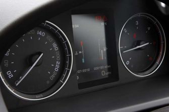 Macht aber nix, sagen die Land Rover Innenarchitekten, dafür haben sie ja das Cockpit-Instrumentarium hinter dem neuen Lenkrad überarbeitet: Zwischen Tacho und Drehzahlmesser informiert ein 5 Zoll großes Display über die wichtigsten Funktionen wie Benzinstand und Motortemperatur sowie beispielsweise eben auch das aktuell eingelegte Fahrprogramm.