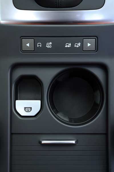 Ebenfalls in besagte Konsole ist der kleine Wippschalter für die elektronische Parkbremse eingebettet, ebenfalls ein Gen aus dem Evoque: Deren „intelligente“ Steuerung bezieht bei der Bremskraftjustierung Parameter wie beispielsweise Gefälle oder Bremsscheiben-Temperatur mit ein. Neu sind zudem das schlüssellose Startsystem (serienmäßig) sowie eine Rückfahrkamera mit Anhängerassistentt (420 Euro Aufpreis), eine Standheizung (1.140 Euro) oder eine Sprachsteuerung für das Audio-/Navi-/Telefonsystem (1.850 Euro).