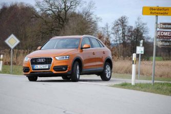 Audi Q3 2.0 TDI quattro S-tronic: Sparsamer Sportflieger / Seite 3Getrübt wird die Freude allein durch die Abstinenz des audi-eigenen Torsen-Differenzials als dynamischer Kraftverteiler zwischen den Achsen. Arbeitet es doch deutlich agiler als der hier automatisch zuschaltende Allradantrieb aus dem VW-Regal. So ist der Audi Q3 im Grunde seines Wesens wie sein Stiefbruder Tiguan ein Fronttriebler, dem erst bei verlustiger Traktion an der Vorderachse auch Antriebskraft für die hinteren Räder zuteil wird. Was allerdings mit spürbarer Verzögerung erfolgt, man wünscht sich mitunter eine schnellere Reaktion der elektronischen Regelung für die Lamellenkupplung. Da helfen offenfühlig weder die Schlupfregelung noch die radselektive Momentensteuerung: In grenzwertigen Kurven-Situationen schiebt der immerhin 1,6 Tonnen schwere Q3 erstmal deutlich über die Vorderräder und bremst sich dabei ein. Okay, alles ganz easy und harmlos, aber eben irgendwie fad. Sensible Gasfüßler können diese Untersteuertendenz ein bisserl beeinflussen. Aber glücklich macht's nicht. Ganz im Gegensatz zum Konsumverhalten des Diesel-Direkteinspritzers: Obwohl wir uns keiner übertrieben gemütlichen Gangart befleißigten, genehmigte sich das Common-Rail-Aggregat im Schnitt lediglich 6,9 Liter auf 100 Kilometer Wegstrecke. Die führte nur mal kurz in unwegsames Terrain, den eher „gummierten Felgen“ mit 50er Niederquerschnittsreifen zuliebe. Gegen 100 Euro Aufpreis assistiert hierbei ein Bergabfahrprogramm, das den Q3 im Gefälle ohne Bremsbeinarbeit auf Geringtempo hält. Vom Rest des Ingolstädter Kompakt-SUV dürfen Sie sich anhand der Fotos ein Bild machen: Wir verweisen auf das übersichtlich gestaltete Cockpit mit klarer Instrumentierung im Halbrund des Armaturenträgers oder den variablen Laderaum. Etwas schwer zu erkennen: Die haptisch unangenehmen Plastikschaltpads hinter dem Lenkradkranz und der im Gegensatz zu den Alu- und Chromapplikationen eher billig wirkende Kunststoff-Deckel des unteren Handschuhfachs. Und vor allem: Der hohe Basispreis dieser Q3-Version sowie die nicht gerade preiswerten Sonderausstattungen. Das Samoaorange-Metallic steht übrigens mit 650 Euro in der Liste.