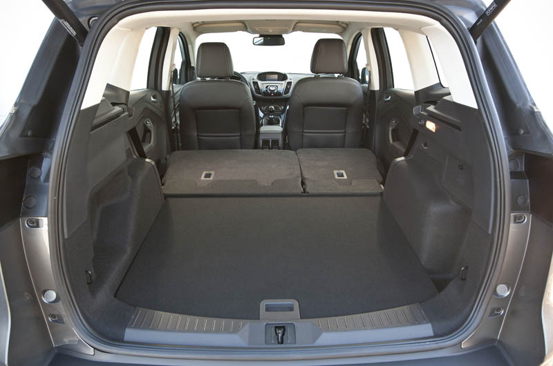 Das Längenwachstum kommt im Wesentlichen dem Laderaum zugute, der nun zwischen 425 und 1.653 Liter schluckt – gegenüber 410 bis 1.405 Liter beim Vorgänger. Zusätzlich hat Ford die Rücksitzbank komplett neu konstruiert. Zum einen lässt sich nun die Lehne in ihrer Neigung dreifach verstellen, zum anderen funktioniert das Umklappen jetzt mit einem Griff und die Ladefläche reicht neuerdings bis zu den Lehnen der Vordersitze – ohne dass, wie bisher, die hochgeklappte Sitzbank im Weg steht. Der Effekt: rund 16 cm mehr Laderaumlänge. Weniger praktisch ist dagegen, dass sich das Heckfenster nun nicht mehr separat öffnen lässt – dafür kann im neuen Kuga eine elektrische Heckklappe für 575 Euro bestellt werden, die sich berührungslos öffnet und schließt, sobald man mit dem Fuß unter die Heckstoßstange „tritt“ – vorausgesetzt man hat den Schlüssel des Keyless-Entry-Systems in der Hosentasche.