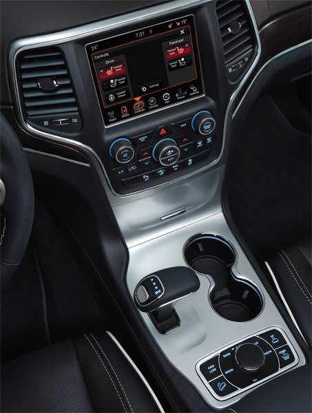Jeep Grand Cherokee 2014 - Spürbare Leistungsspritze für den Diesel / Seite 3Die Kommandozentrale für Getriebe, Geländeprogramm und Fahrwerk ist klassisch in der Konsole zwischen den Sitzen installiert. Die Symbole für die beiden letztgenannten sind dabei eindeutig gestaltet. Die Kulisse des neuen Automatikwählhebels ist es dagegen nicht – zumal streng genommen auch keine vorhanden ist. Besagter Hebel lässt sich im erfrischten Modell nur mehr über zwei Schaltebenen bewegen: Vor und zurück ohne gefühlte Zwischenstufen. Der jeweilige Modus wird im Display des rechten Rundinstrumentes angegeben. Da passiert es leicht, dass man nicht auf Anhieb in der gewünschte Stufe landet, beim Wechsel von „R“ zu „D“ beispielsweise den Leerlauf erwischt. Mehr Klarheit in der Aussage wünschen wir uns nach dem ersten Tagesausflug auch von dem vergrößerten, nun multifunktionalen Zentral-Touchscreen. In dessen vielschichtigen Menüs wurden zwar mit bester Absicht die im Vorgänger zahlreichen Bedientasten der Mittelkonsole zusammengefasst. Einfacher ist die Suche nach den Funktionen damit aber nicht geworden. Sondern eher ein anspruchsvoller Job, den der Fahrer zugunsten der Verkehrssicherheit an den Beifahrer delegieren sollte. Die Innenausstattung ist auf den ersten Blick wertiger und qualitativer geworden. Äußerlich wirkt der neue Grand Cherokee mit flachen Scheinwerfer-Augen, niedrigeren Lüftungsschlitzen und schmalen, umlaufenden Rückleuchten schlanker als sein Vorgänger. Die Preisliste der neuen Grand Cherokee-Palette eröffnet nun mit 45.500 Euro für den 190 PS V6-Diesel in der Laredo-Basisausstattung. Am oberen Ende steht das Top-Modell SRT V8 mit 76.900 Euro.