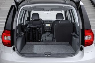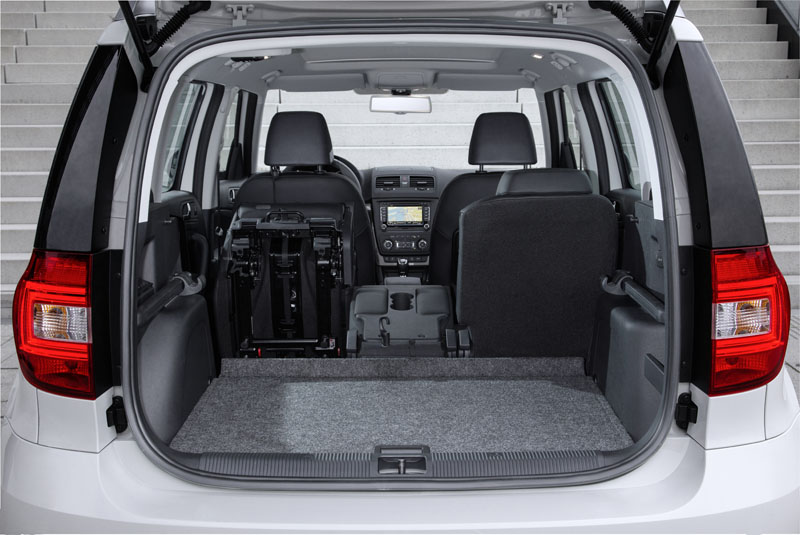 Dank des variablen Sitzsystems wächst der Laderaum bei Bedarf von 405 auf 1.760 Liter, die senkrecht stehende Heckklappe öffnet 1,87 Meter hoch und die 712 Millimeter hohe Ladekante erleichtert das Be- und Entladen. Erstmals kann für den Yeti eine Kofferraum-Wendematte geordert werden, die auf der einen Seite einen Teppichbelag hat, die andere Seite ist schmutz- und wasserabweisend. Auf Wunsch ist auch ein variabler Ladeboden erhältlich. Er teilt den Kofferraum horizontal in zwei Segmente und bietet im Kellergeschoss einen Stauraum für die nicht täglich benötigten Dinge.