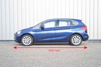 BMW Active Tourer 225i xDrive – Ich bin zwei Autos13.05.2015 Kombi oder Van? Sprint- oder Langstreckenauto? Keins von beiden, sondern ein Mix aus diesen Gattungen, der gemeinhin als „Crossover“ charakterisiert wird. Was uns als Allrad-Fans vor allem dann sinnvoll erscheint, wenn das Fahrzeug entsprechend einen 4x4-Antrieb hat. Insofern ist der BMW 225i xDrive, der just als Testwagen vor der Türe steht, ein echter solcher Crossover. Den der Münchener Hersteller zielführend als „Active Tourer“ bezeichnet. Tatsächlich ein Allrounder? Erst mal Klappe auf und den Laderaum des Hochdachkombis auf sein speditives Talent hin begutachtet: Bei unserem Testwagen öffnet diese elektrisch, was ja vor allem den einkaufstütenbewehrten Familienmenschen gefällt. Kostet allerdings schon mal Aufpreis: 450,00 Euro. Dafür ist die in drei Partien geteilte Rückbanklehne serienmäßig und lässt sich auch so klappen: vierzig-zwanzig-vierzig, so das Teileverhältnis in Prozent. Die reale Zentimeter-Umrechnung ist einfach, weil die nominelle wie nutzbare Breite über 1,10 Meter beträgt. Sprich: In der Mitte gibt's die kombiklassische Durchlademöglichkeit, beispielsweise für zwei Paar Lanlaufski. Die dürfen zwar durchaus über 1,80 m lang sein, spitzen dann allerdings auf der Mittelkonsole zwischen den Vordersitzen hervor. Vom Kofferraumrand bis zum Nackenwulst der geklappten Lehne lassen sich dann links oder rechts bis zu 1,76 Meter lange Dinge einladen. Wobei man bodentechnisch einen Knick in Kauf nehmen muss: Mangels Sitzflächenklappbarkeit lässt sich keine ebene, durchgehende Ladefläche realisieren. Da ist er typisch lifestylig, dieser Tourer – eine formale Aussage, die das Design mit aufsteigender Gürtel- und absteigender Dachlinie ja auch deutlich betonen will: Und so sieht man ihm die fast 1,60 Meter Höhe und 1.510 Liter Stauvolumen auf den ersten Blick nicht an (zum Vergleich: der 3er Kombi ist nur 143 cm hoch, fasst aber lediglich 10 Liter weniger).