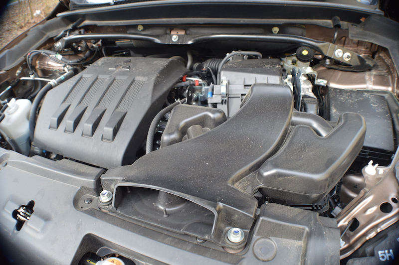 Apropos brauchbar: Was steckt in diesem Sinne unter der vorderen Haube? Ein 1,5 Liter-Vierzylinder-Benziner mit Turbolader, der immerhin 120 kW, also 163 PS, bei 5.500 Umdrehungen leistet. Ein bisserl wenig Hubraum für viel Leistung? Das Aggregat ist nun mal ein typischer Vertreter des modernen „Downsizing“, das auch Mitsubishi zur Einhaltung der Verbrauchs- und Emissionswerte praktiziert. Dieses Motörchen ist mit einem CVT-Getriebe gepaart, das acht Stufen simuliert. Und das macht es im Prinzip durchaus ordentlich: Mit Schaltpads am Lenkrad oder via des Wählhebels auf dem Mitteltunnel lässt es sich manuell verwalten und reagiert dabei unerwartet zügig, dass es im wechselhaften, herausfordernden Geläuf einer Bergstraße irgendwann doch richtig Spaß macht. Die Lenkung dürfte dabei weniger teigig, sondern bitte etwas präziser und reaktionsschneller sein. Federung und Dämpfung agieren hier leidlich sportlich, sie sind kompromissbetont abgestimmt und bieten mehr Komfort auf einer eher flüssig-kurvenläufigen Landstraße oder geraden Autobahn.