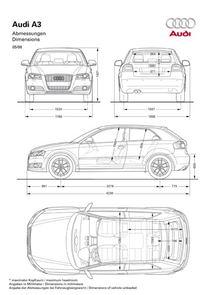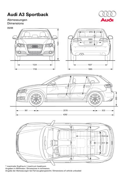 Facelift für den Audi A321.05.2008 In neuem Gewand und technisch aufgewertet rollt der Audi A3 ab Sommer zu den Händlern. Das neue Design – unter anderem mit modifizierten Stoßstangen, neuer Motorhaube und überarbeiteten Kotflügeln – lässt den Audi A3 in der Länge um 25 Millimeter auf 4,24 Meter wachsen, der viertürige „Sportback“ bringt es nun auf 4,29 Meter Außenlänge. Wie bisher, stattet Audi auch den neuen A3 mit acht verschiedenen Motoren aus, von denen fünf auch mit Allradantrieb kombiniert werden. Gleichzeitig haben die Ingolstädter die zentrale hydraulische Lamellenkupplung ihres quattro-Antriebs weiterentwickelt – sie spricht jetzt noch schneller an, wenn sie die Motorkraft zwischen den Achsen verteilt. Einem Zugewinn an Stabilität, Traktion und Fahrfreude soll das Ergebnis der Bemühungen sein.