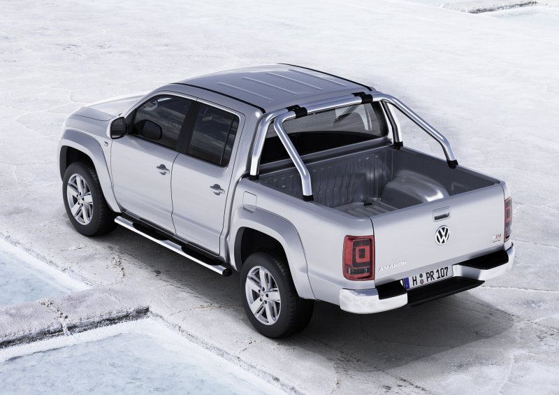 VW Amarok – Motoren, Antrieb und Ausstattungen / Seite 2Für den Vortrieb stehen – je nach Markt – bis zu drei verschiedene Antriebskonzepte zur Wahl: permanenter Allradantrieb, zuschaltbarer Allradantrieb oder Heckantrieb. Für den Betrieb über Stock und Stein ist der Amarok 4MOTION mit zuschaltbarem Allrad und einer roten „4“ im Schriftzug die ideale Wahl. Permanent allradgetrieben und komfortabler setzt sich der Amarok 4MOTION mit schwarzer „4“ in Szene. Ein Torsen-Zentraldifferential verteilt bei ihm die Antriebskräfte im Verhältnis 40:60 auf Vorder- und Hinterachse. Für schwerste Aufgaben gibt es im Amarok zudem eine Geländereduzierung sowie eine optionale Differentialsperre für die Hinterachse. Zur Serienausstattung des Amarok gehört ein per Tastendruck zuschaltbares Offroad-ABS, das die Bremswege im Gelände und auf Schotterbahnen deutlich verkürzt. Beim optional erhältlichen ESP wird zusätzlich mit dem Offroad-ABS unter 30 km/h der Bergabfahrassistent aktiviert, der über gezielte Bremseingriffe die Fahrgeschwindigkeit konstant hält und so ein sicheres und kontrolliertes Bergabfahren ermöglicht.