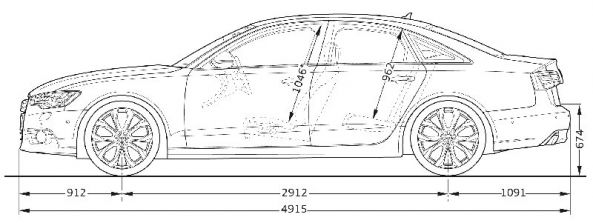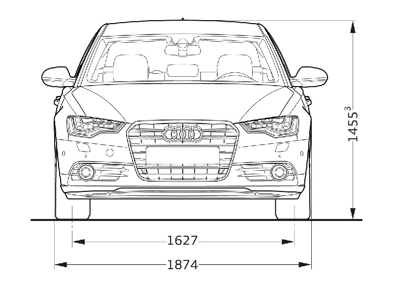 Der neue Audi A6 ist 4,92 Meter lang und hat 291 Zentimeter Radstand. Seine Breite beträgt 1,87 Meter, seine Höhe jedoch nur 146 cm. Im Vergleich zum Vorgängermodell baut der Neue damit einige Millimeter kürzer und niedriger, in der Breite und vor allem im Radstand hat er jedoch deutlich zugelegt. Sein Gepäckraum fasst nun 530 Liter und die Fondlehnen lassen sich optional umklappen (Serie bei den Komfortsitzen), wodurch das Kofferraumvolumen auf 995 Liter anwächst.