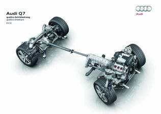 Der neue V6-TDI im Q7 leistet 150 kW (204 PS), sein maximales Drehmoment von 450 Nm liegt zwischen 1.250 und 2.750 U/min an. Im Mittel benötigt der Audi Q7 3.0TDI quattro 7,2 Liter Diesel pro 100 km, was einem CO2-Äquivalent von 189 Gramm pro km entspricht. Das große SUV beschleunigt in 9,1 Sekunden von null auf 100 km/h und erfüllt die EU5-Abgasnorm. Seine Höchstgeschwindigkeit liegt in der Version mit optionaler Luftfederung bei Tempo 205, mit der Stahlfederung sind es 202 km/h.