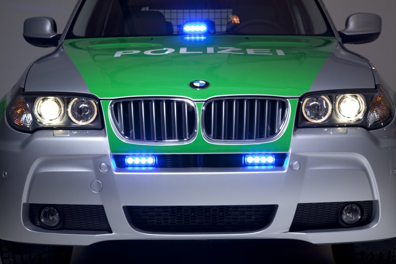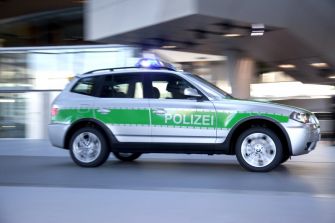 BMW X3 für Autobahn-Streifen – Für mehr Sicherheit im Einsatz29.04.2010 Bayrische Beamte im Streifendienst testen derzeit den Prototypen eines neuen Einsatzfahrzeuges auf Basis des X3, dessen Sicherheitsausstattung von BMW in Kooperation mit Experten des Innenministeriums, der Autobahnpolizei sowie der Polizeigewerkschaften entwickelt wurde. Immer wieder war es in jüngster Zeit zu schweren Unfällen gekommen, bei denen Verkehrsteilnehmer, die ein stehendes Polizeifahrzeug zu spät oder gar nicht wahrgenommen hatten, in diese Autos gerast waren: Schwer verletzte oder sogar getötete Polizisten waren dabei zu beklagen. „Der Arbeitsplatz Autobahn ist für Polizeibeamte aufgrund der Verkehrsdichte und der hohen Geschwindigkeiten sehr gefährlich“, erklärte der bayrische Innenminister Herrmannn anlässlich der Vorstellung des Fahrzeugs. Nun wurde ein neuses Sicherheitskonzept in einem BMW X3 xDrive30d mit dem 160 kW/218 PS starken Reihensechszylinder-Dieselmotor umgesetzt. Bei geöffneter Heckklappe des X3 kommen neben der synchronisierten LED-Laufleiste der Sondersignalanlage auf dem Dach auffällige LED-Heckblitzer an der Fahrzeugseite sowie an der Unterseite der Gepäckraumklappe zum Einsatz. Zusätzliche Signalwirkung wird durch ein reflektierendes Gepäckraumgitter mit einer Folie und weiteren Blinkleuchten erzielt. Diese sind selbst durch das geschlossene Heckfenster gut zu erkennen. Bei geschlossener Heckklappe erfolgt die Absicherung zusätzlich durch Heckblitzer im Dachspoiler des X3. Darüber hinaus ist der gesamte untere Bereich der Heckklappe mit einer reflektierenden Folie beschichtet. Auch die Fahrzeugfront weist eine optimierte Erkennbarkeit auf. Zu diesem Zweck wurden zwei Frontblitzer unterhalb der BMW Niere und eine weitere LED-Signaleinheit in der Mitte der Windschutzscheibe integriert.