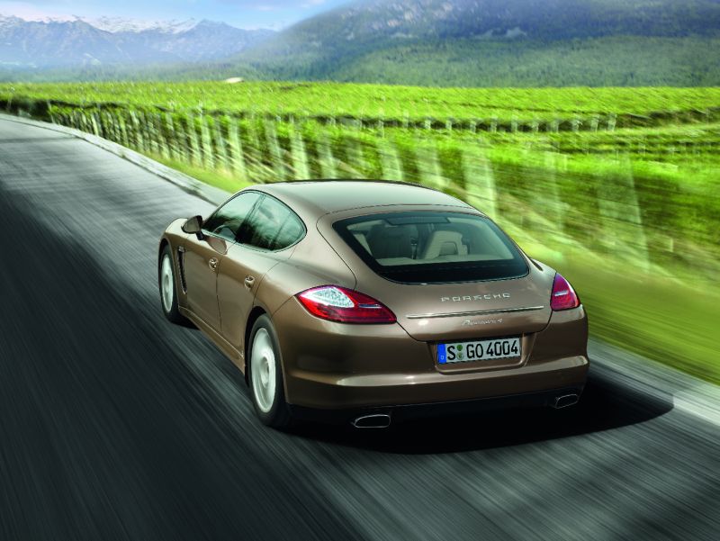 Porsche Panamera – Neue V6 Basismodelle mit 300 PS16.02.2010 Als neue Basismodelle der Gran Turismo-Baureihe bringt Porsche ab Mai 2010 den Panamera und Panamera 4. Getreu der bei Porsche üblichen Typbezeichnung überträgt der Panamera seine Kraft über die Hinterräder auf die Straße, während der Panamera 4 serienmäßig über einen Allradantrieb verfügt. Sowohl die Allradversion als auch der Hecktriebler des Einstiegs-Panamera werden von einem neu entwickelten 3,6-Liter-V6-Motor mit Benzindirekteinspritzung und einer Leistung von 300 PS (220 kW) sowie einem maximalen Drehmoment von 400 Nm angetrieben. Beide Modelle sollen mit Porsche-Doppelkupplungsgetriebe (PDK) und Auto Start-Stopp-Funktion deutlich weniger als zehn Liter Kraftstoff auf 100 Kilometer verbrauchen. Der Panamera kommt im Schnitt mit 9,3 Liter pro 100 Kilometer aus, dem Panamera 4 genügen durchschnittlich 9,6 Liter pro 100 Kilometer (Werksangaben). Rollwiderstandsoptimierte 19-Zoll-Ganzjahres-Reifen, die als Option erhältlich sein werden, senken diese Verbrauchwerte um jeweils weitere 0,2 Liter. Damit werden CO2-Werte von 213 g/km (Panamera) und 220 g/km (Panamera 4) erreicht. Beide V6-Panamera erfüllen die EU5-Abgasnormen. Die Weltpremiere von Panamera und Panamera 4 wird auf dem Autosalon Peking ab 23. April 2010 stattfinden, beide Modelle werden dann bereits im Mai 2010 in Deutschland auf den Markt kommen. Die Preise beginnen bei 75.899 Euro inklusive Mehrwertsteuer für den Panamera, während der serienmäßig mit dem Porsche-Doppelkupplungsgetriebe PDK ausgestattete Panamera 4 inklusive Mehrwertsteuer 84.110 Euro kosten wird.